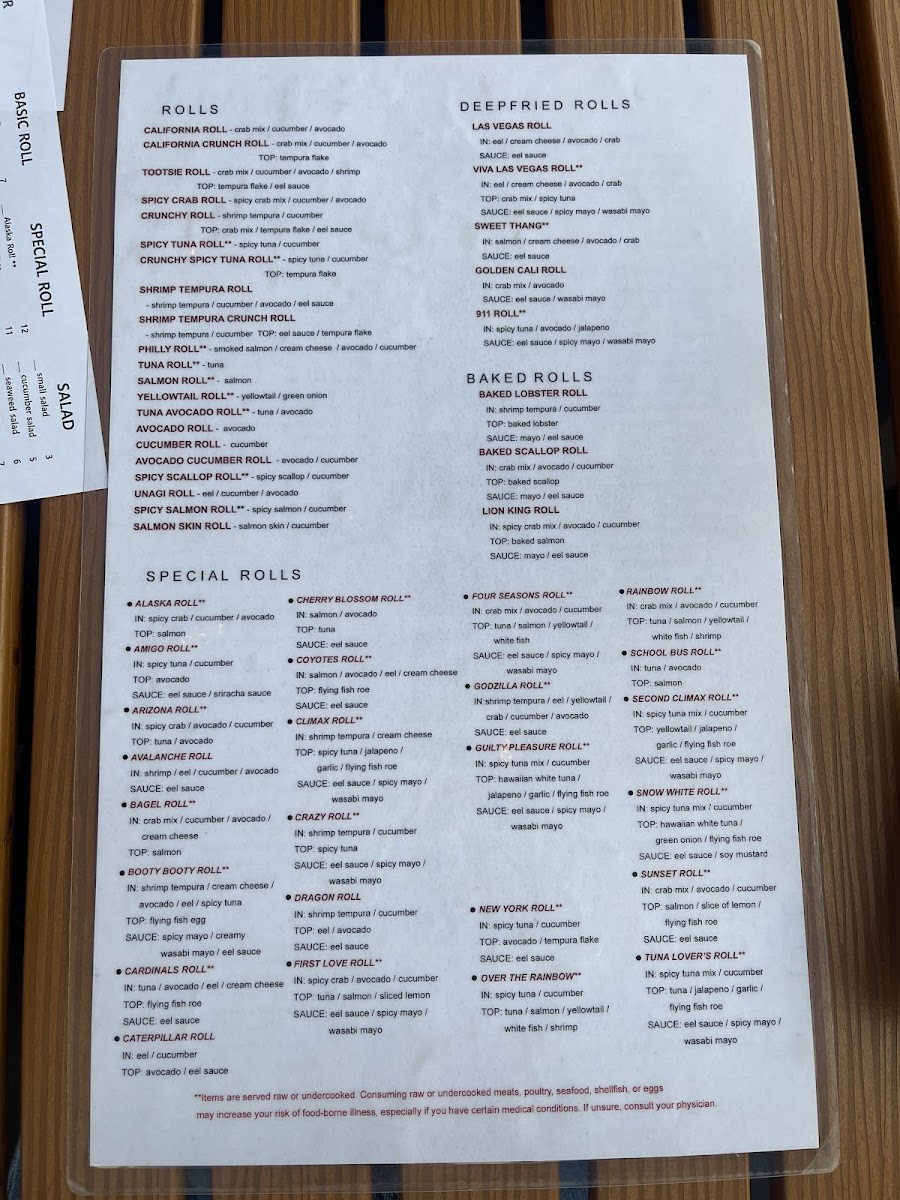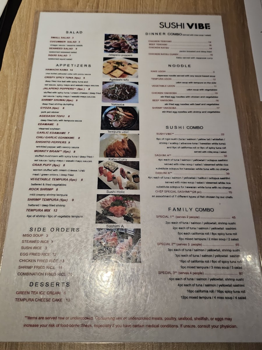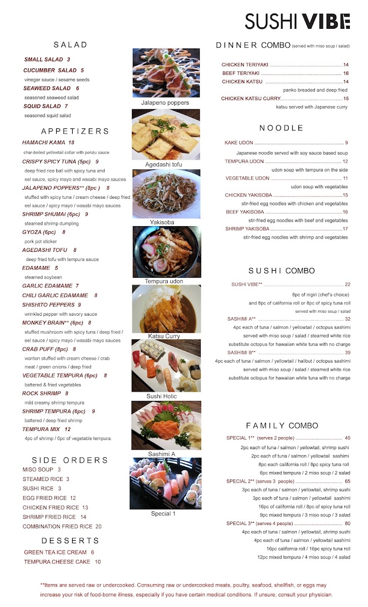 Beverages include sake and cocktails, complementing the food selections. The menu structure provides choices for casual dining occasions, accommodating both quick orders and full meals. This range supports lunch and dinner service, with options for appetizers, main courses, and drinks suitable for various dining preferences.